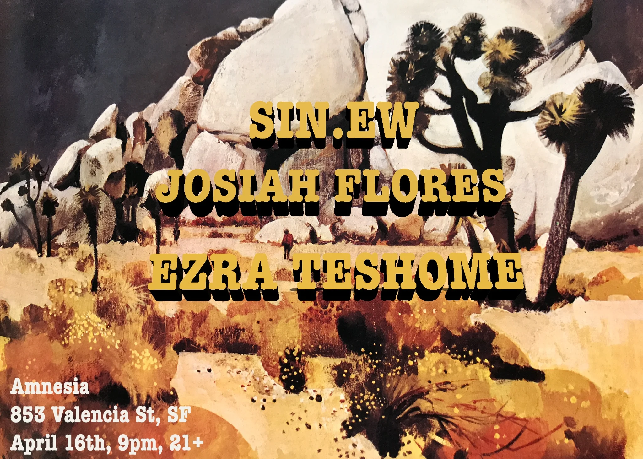 SINEW, Josiah Flores, Ezra Teshome Tuesday, April 16, 2019 9:00 PM 11:00 PM 21:00 23:00 Amnesia 853 Valencia Street San Francisco, CA, 94110 United States (map) Google Calendar ICS